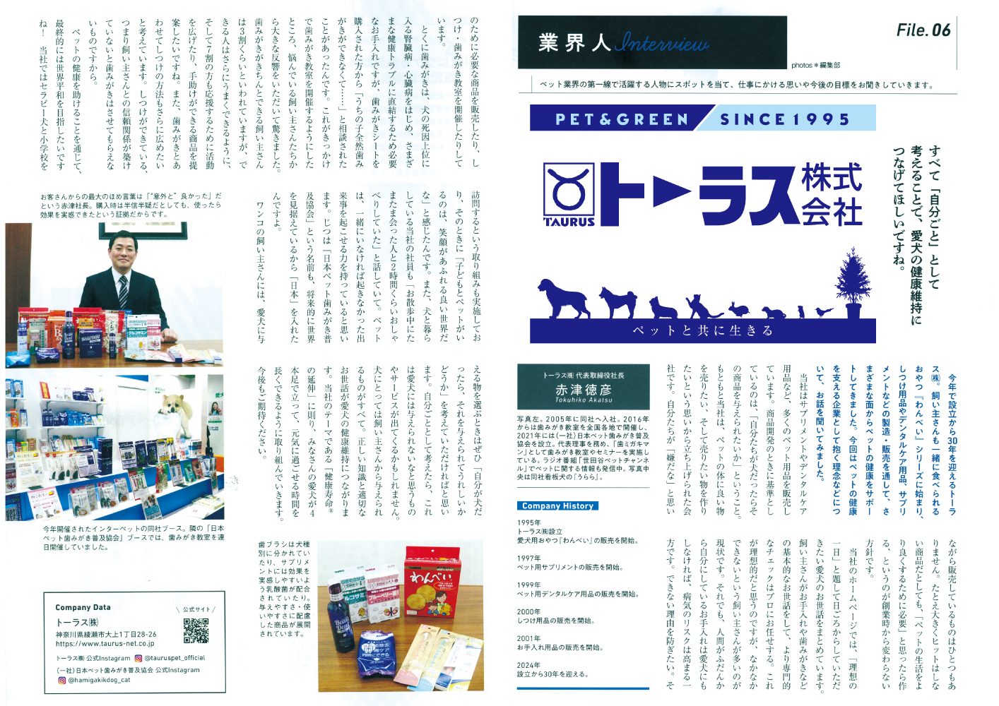 飼い主さんと愛犬の幸せな毎日を応援するムック『WAN 2024年夏号』の『業界人 File.06』でトーラス株式会社が紹介されました。